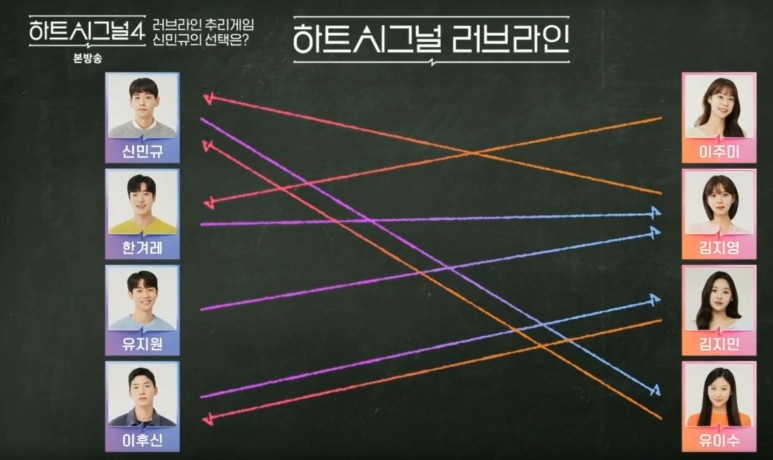 이날 방송 러브라인 결과는 신민규와 유이수가 서로 러브라인이 성사됐고, 이후신과 김지민이 서로를 선택하며 의미심장한 결과가 나왔습니다. 김지영은 신민규를 선택했고, 한겨레와 유지원은 김지영을 선택해 엇갈렸습니다.